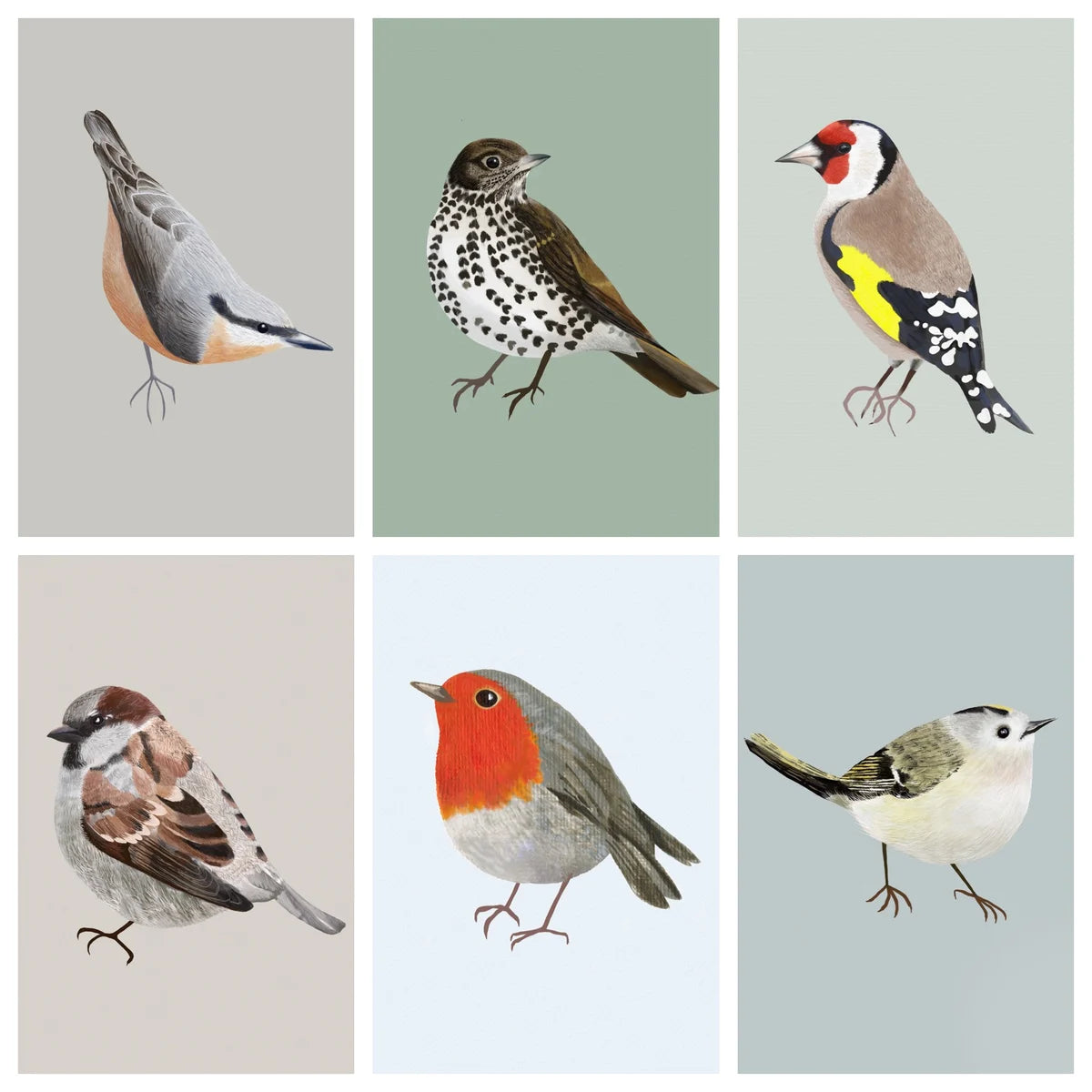 Nuthatch, Goldcrest, Robin, Sparrow, Goldfinch and Song Thrush.