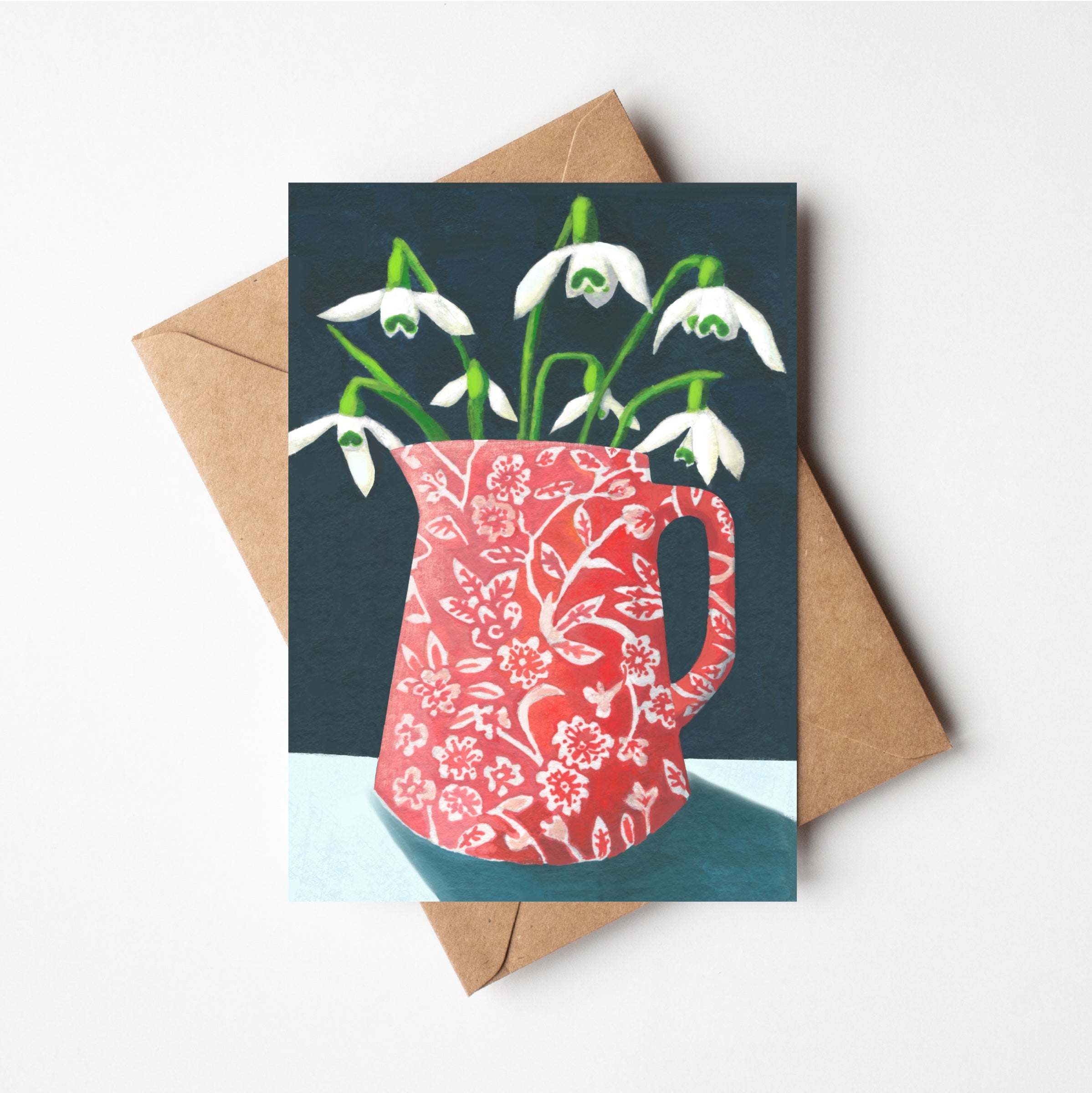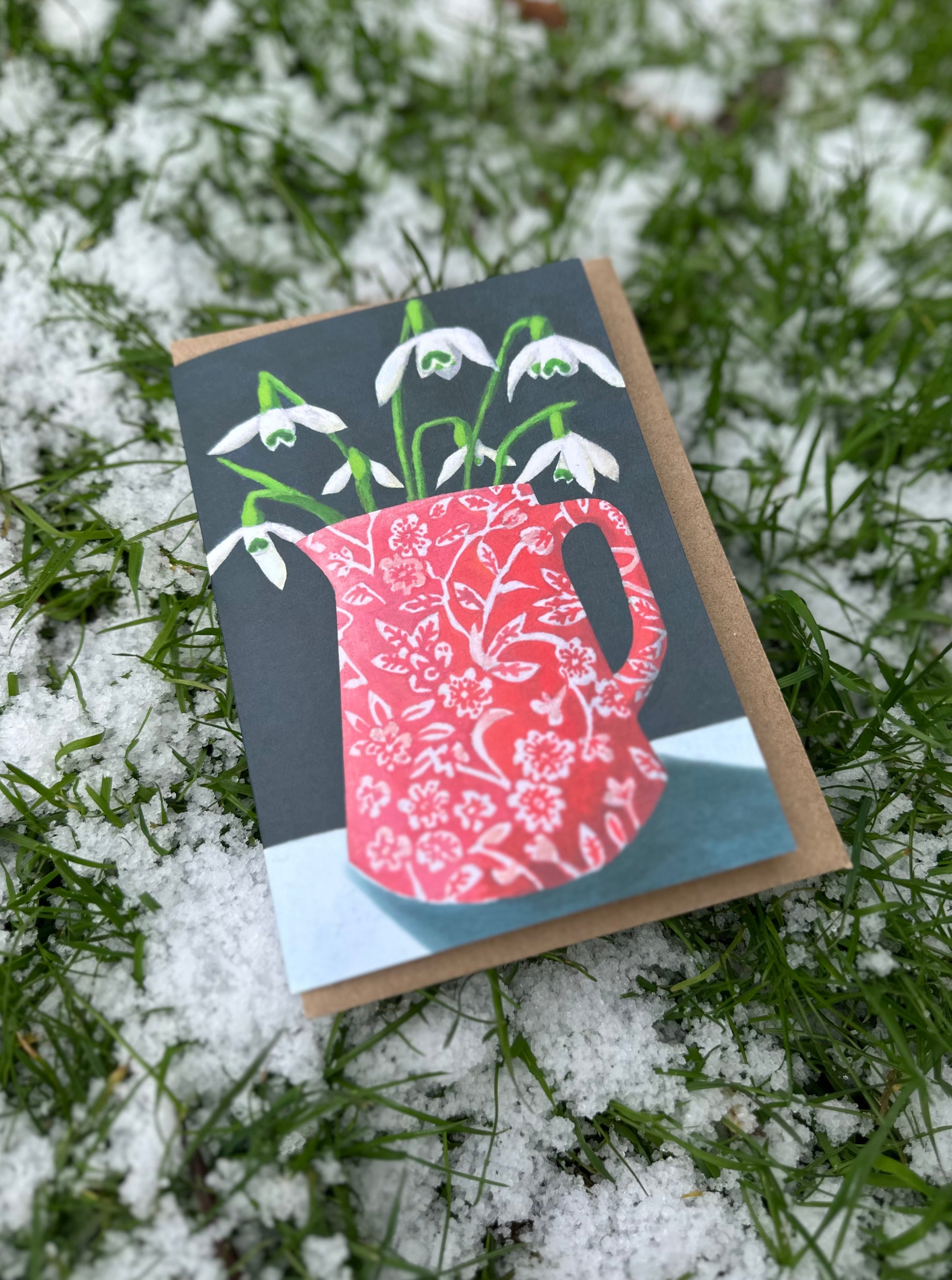 Snowdrops in Red Calico Jug Cards