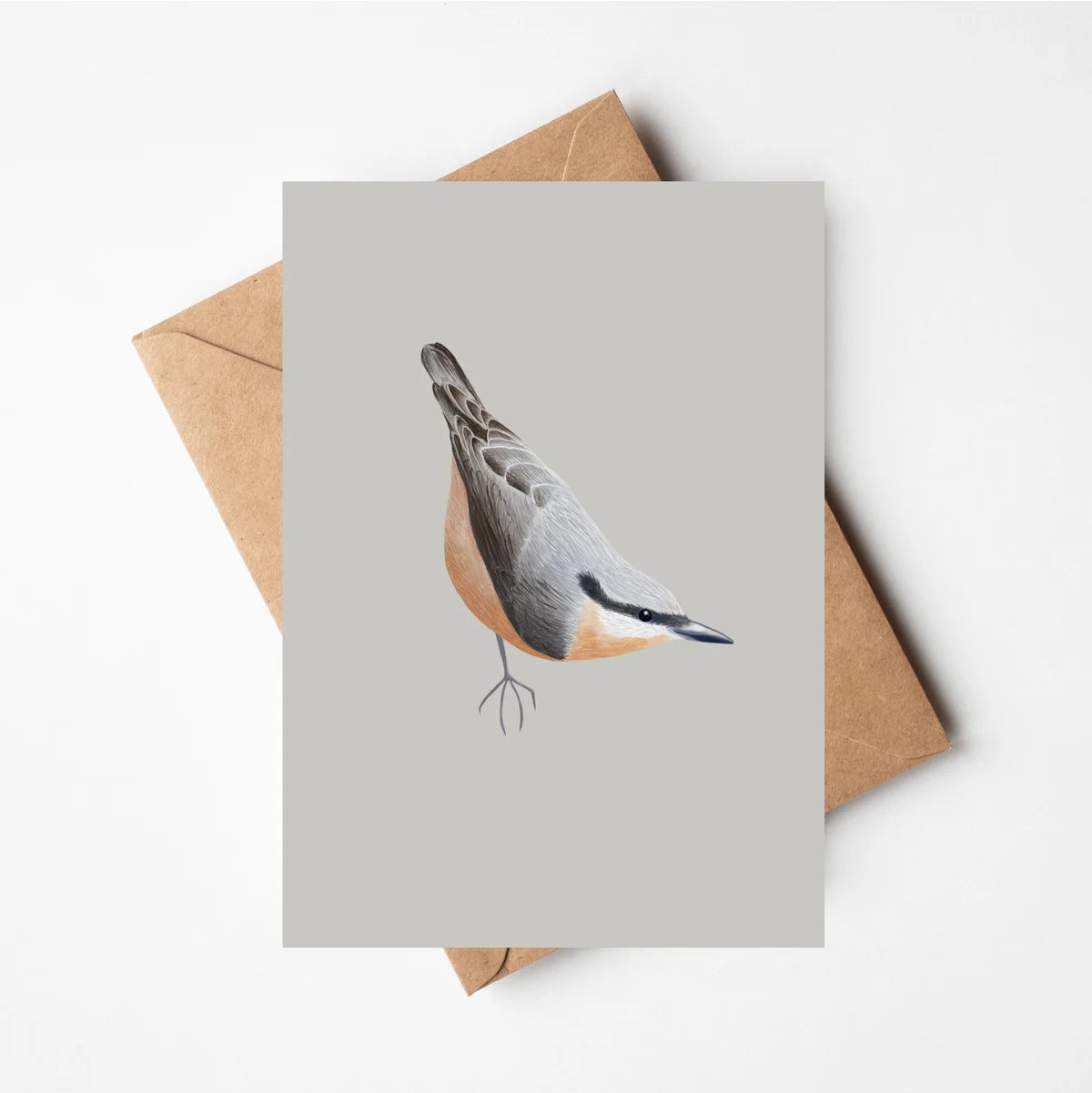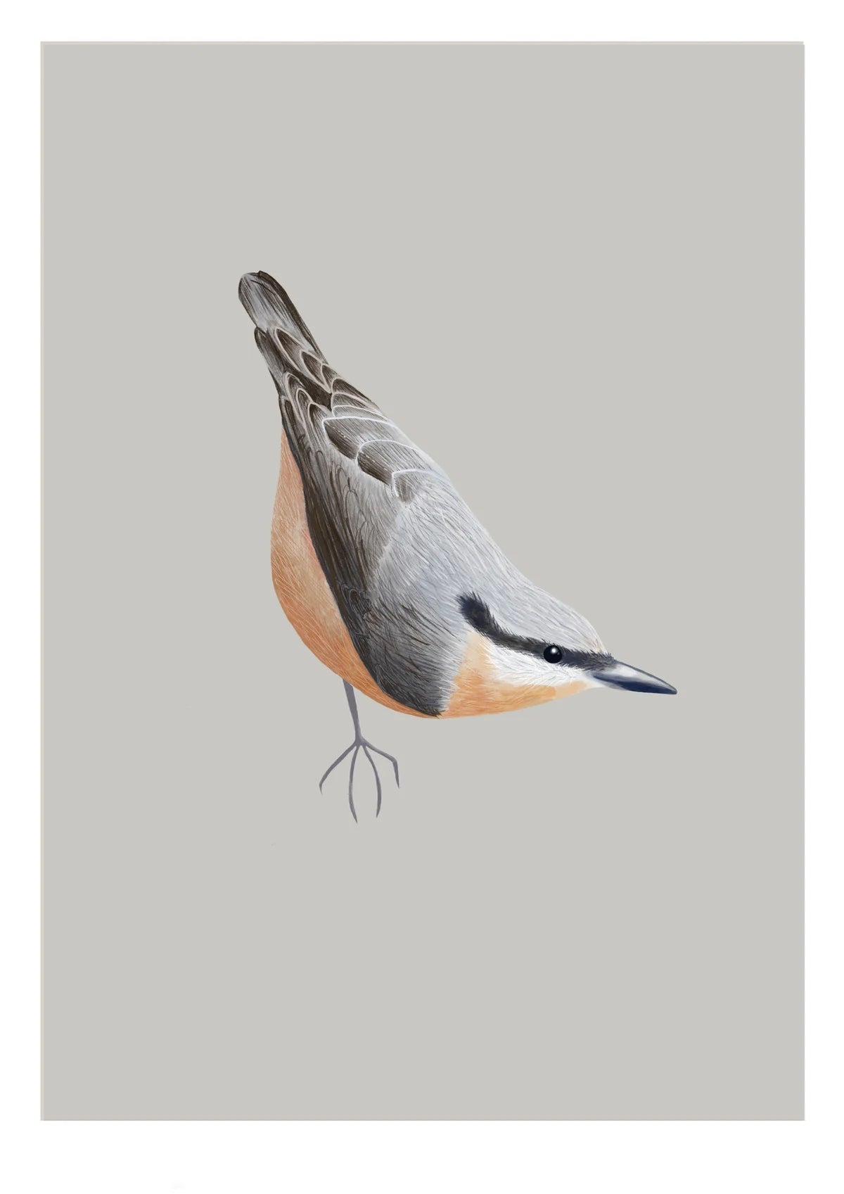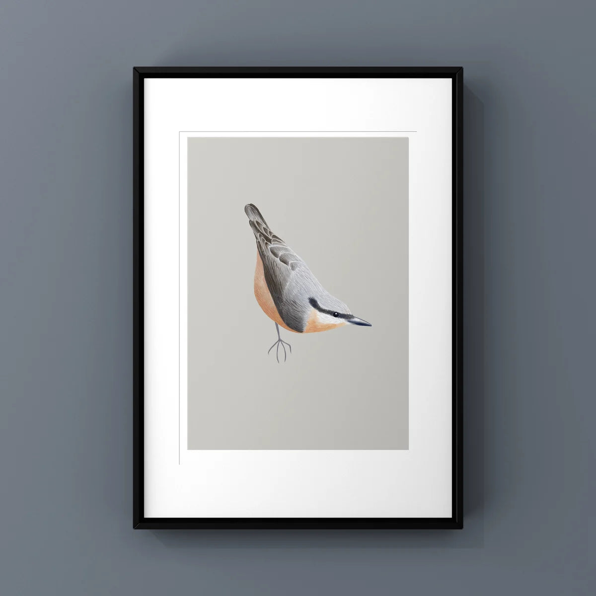 Mon imprimé Sittelle est une nouvelle édition de la série d'estampes « The Garden Birds » de mes œuvres originales utilisant de la gouache acrylique, du crayon et des encres.