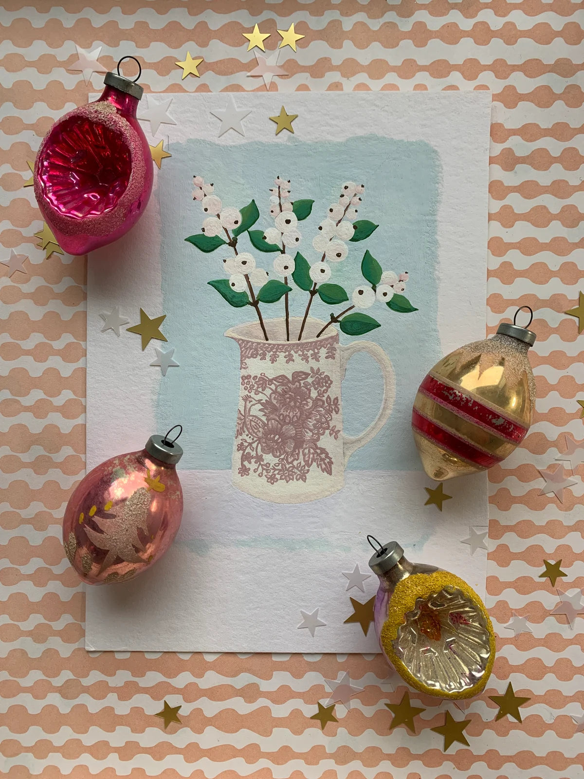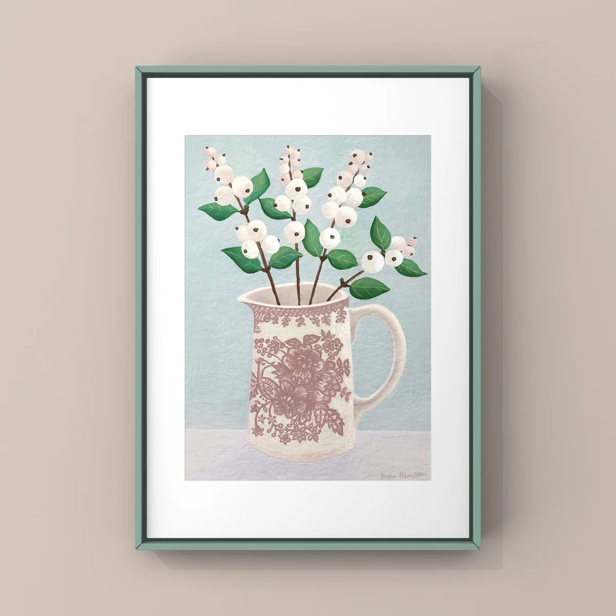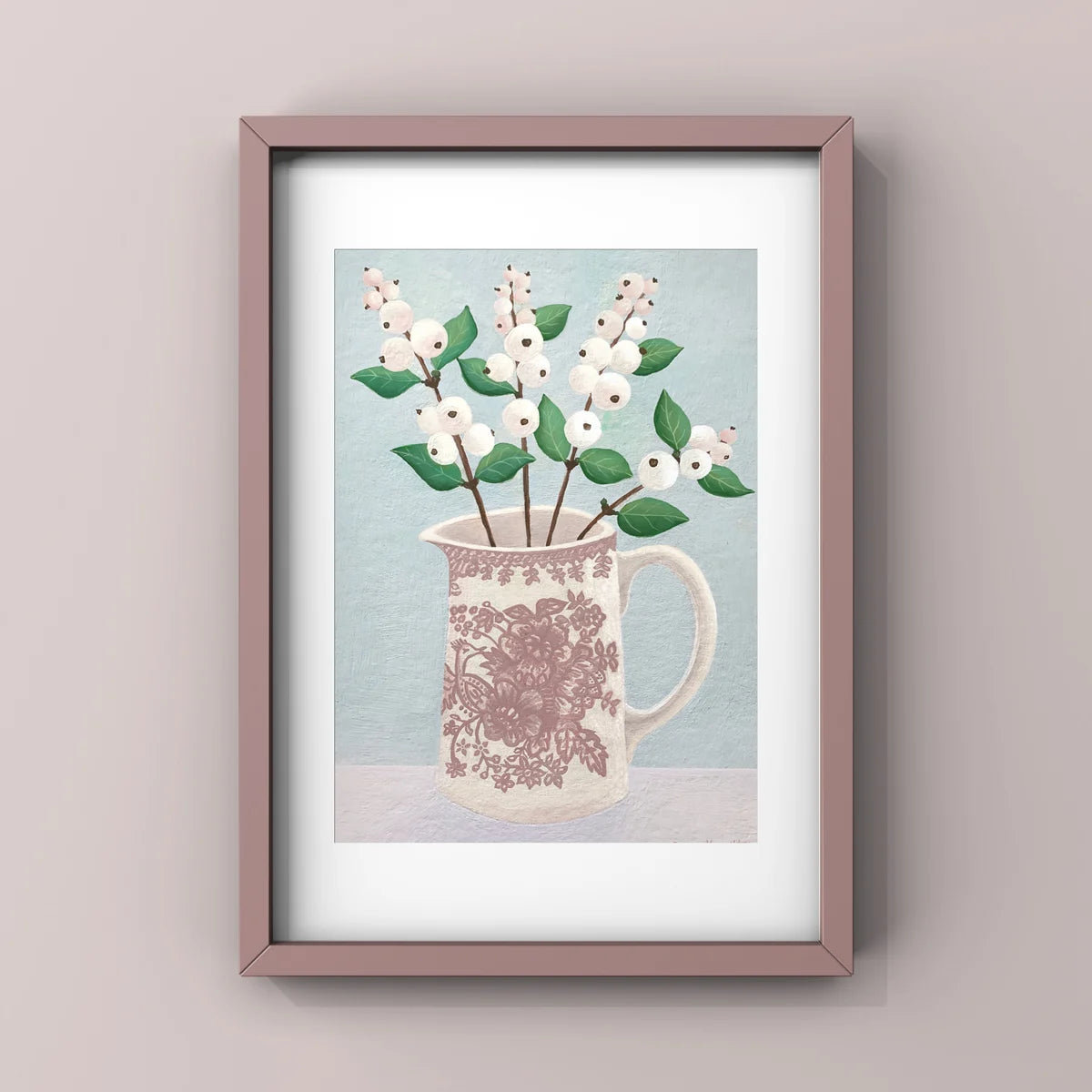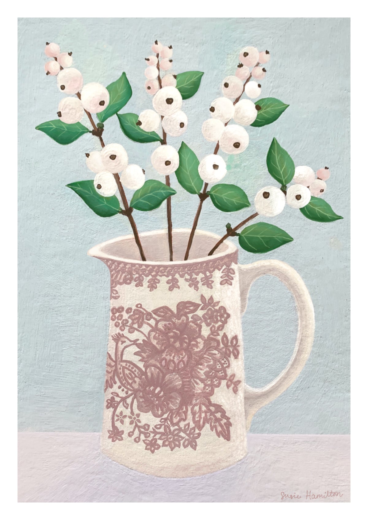 Snowberries dans une cruche de faisan imprimée par Susie Hamilton