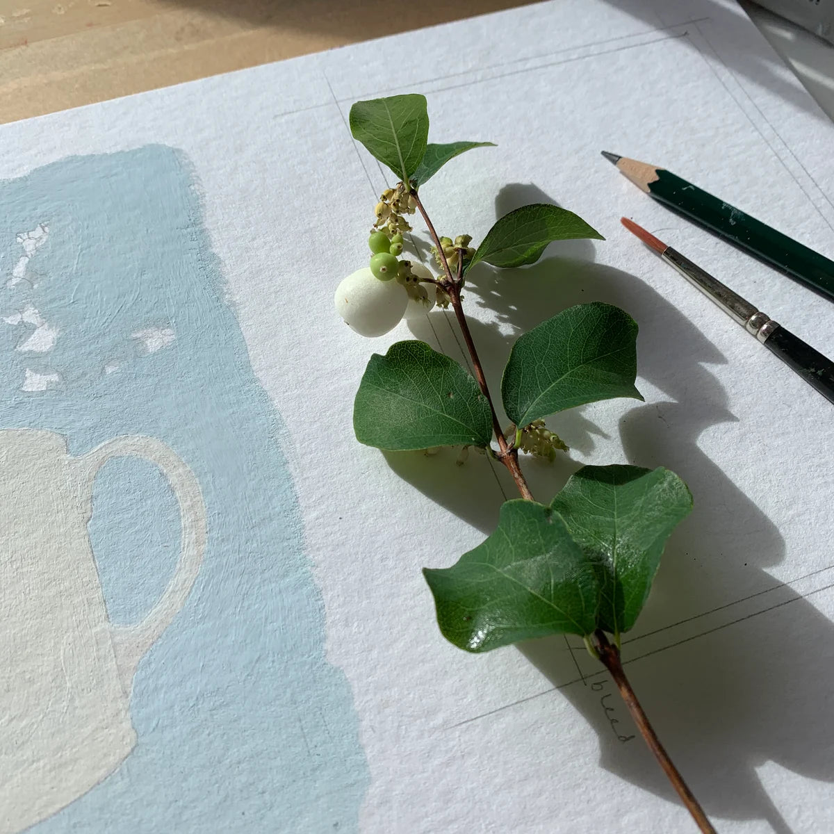 Quelles jolies baies sont les Snowberries, si vous regardez attentivement, vous verrez que les baies plus petites ont des tons roses subtils que j'ai adoré peindre. La symphorine offre un abri confortable aux oiseaux qui mangent également les baies tout au long des mois d'hiver.