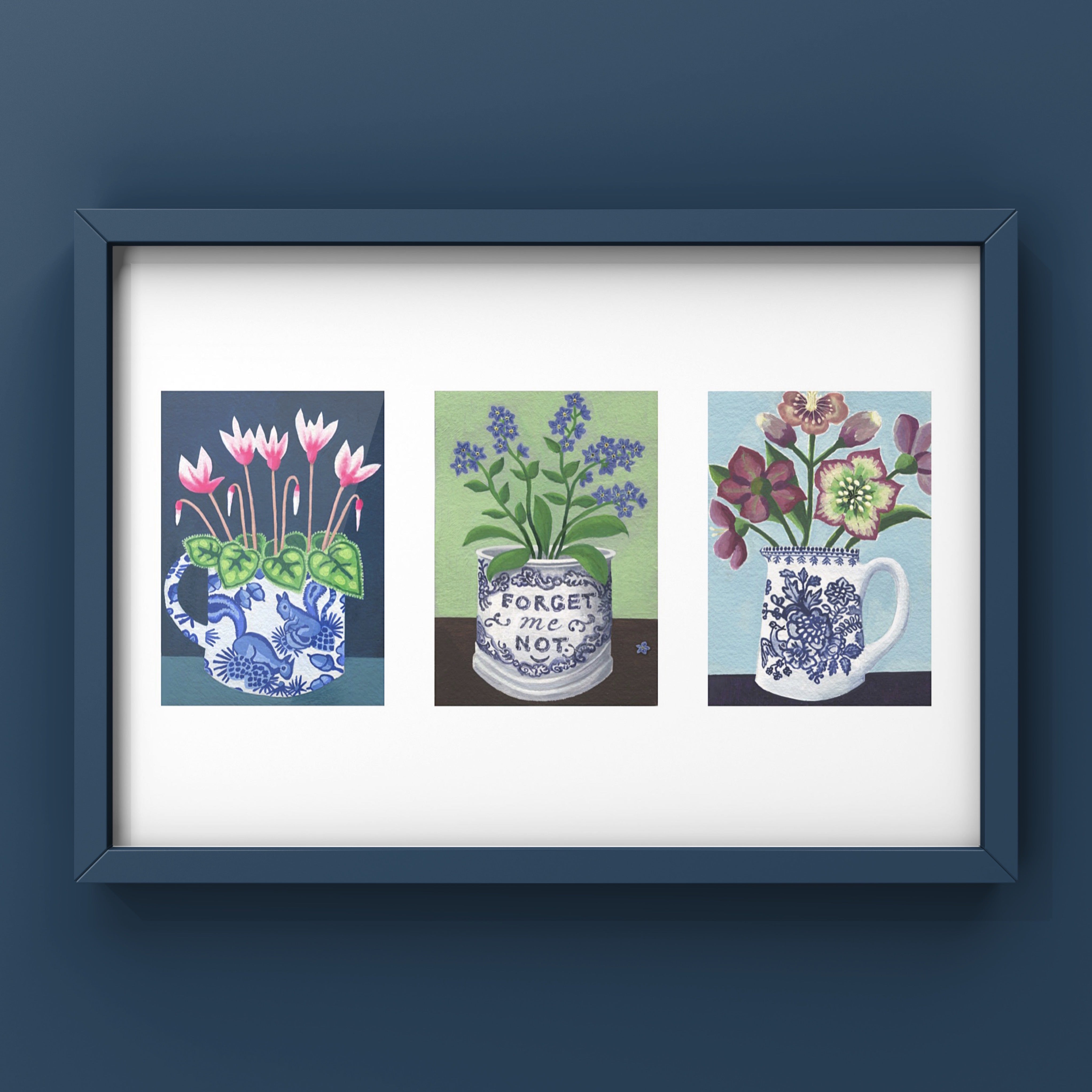 Cyclamen, Myosotis et Hellebore conçoivent tout en un seul imprimé.