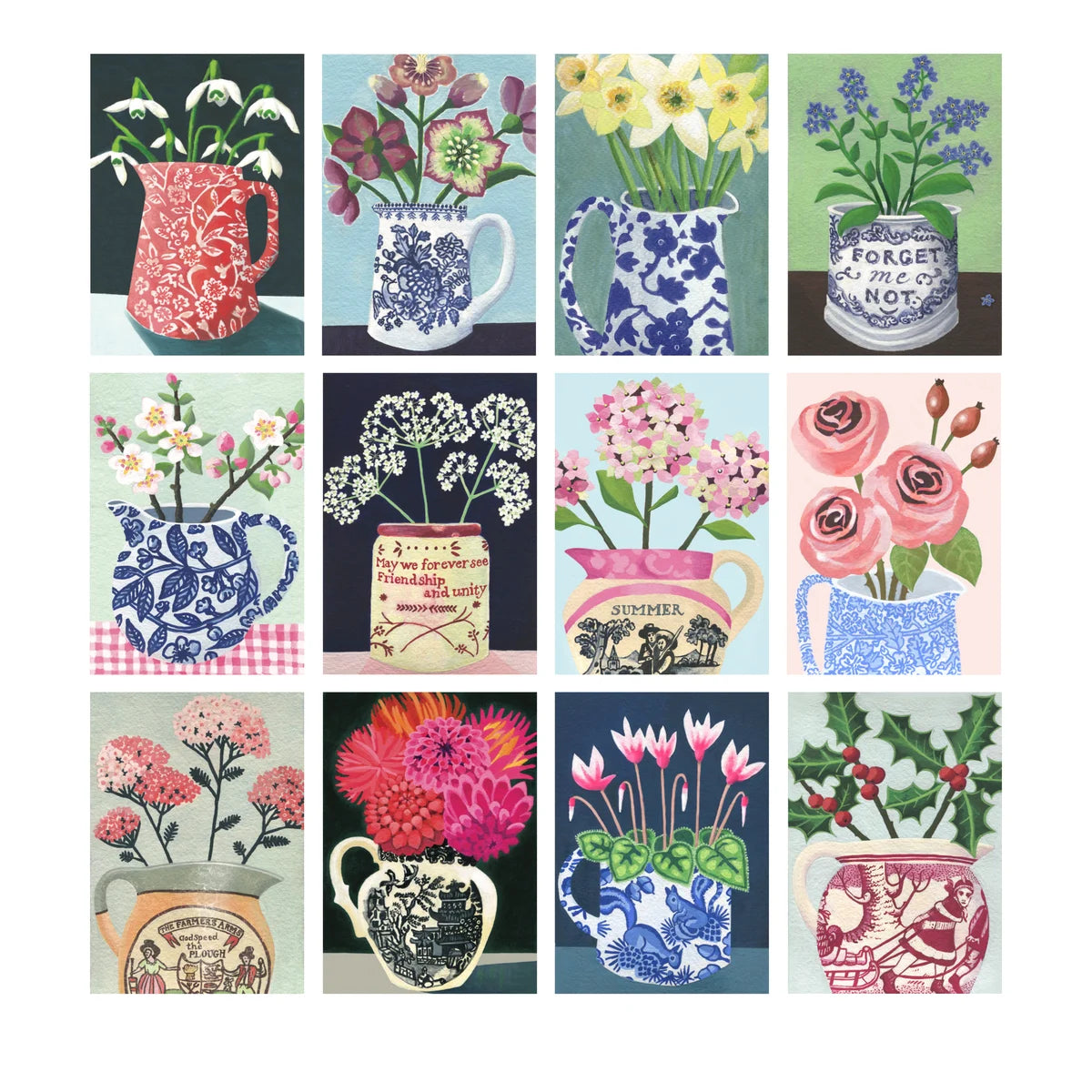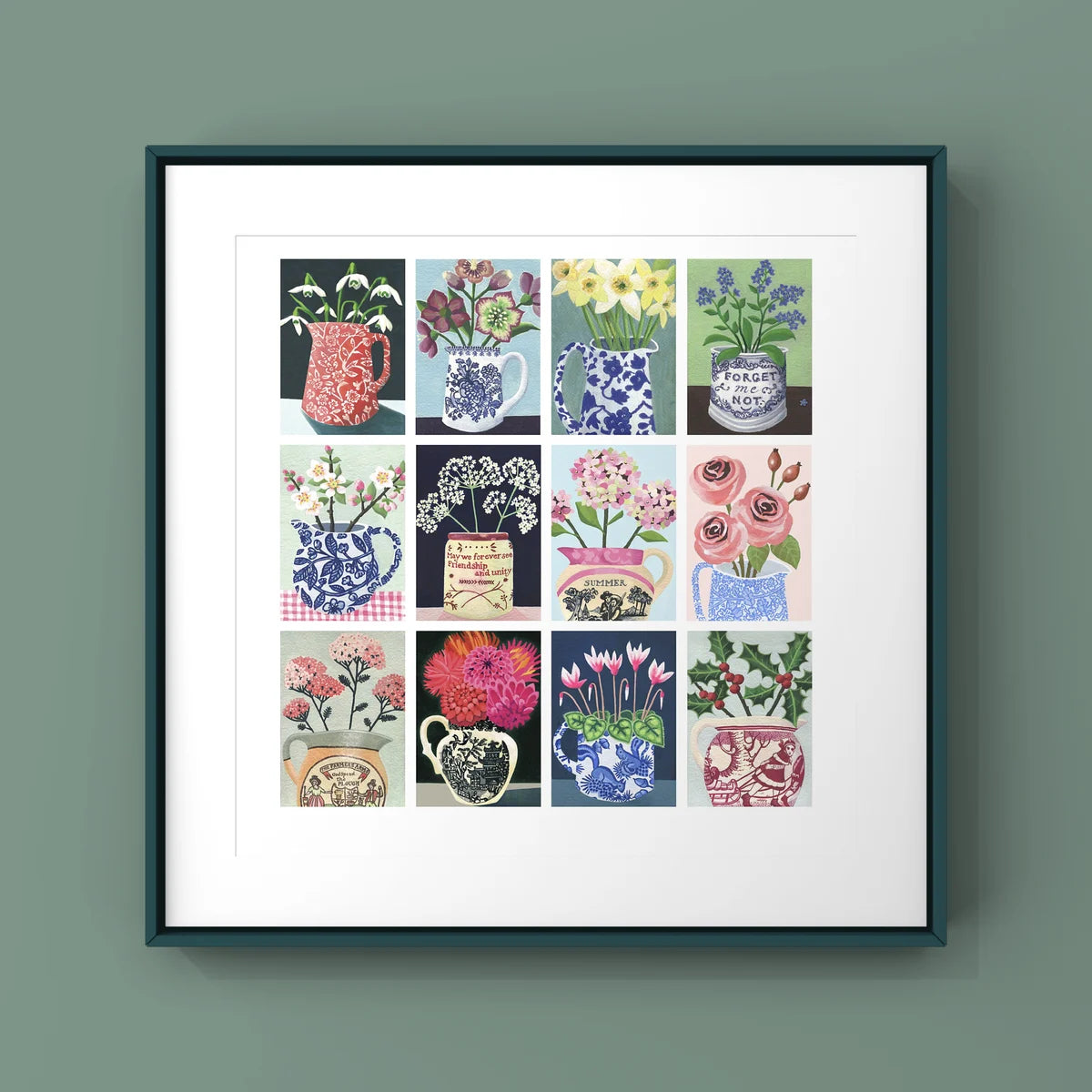 Cette estampe en édition limitée est un montage de chaque dessin de ma série « The Flowering Year » de peintures originales à la gouache acrylique.