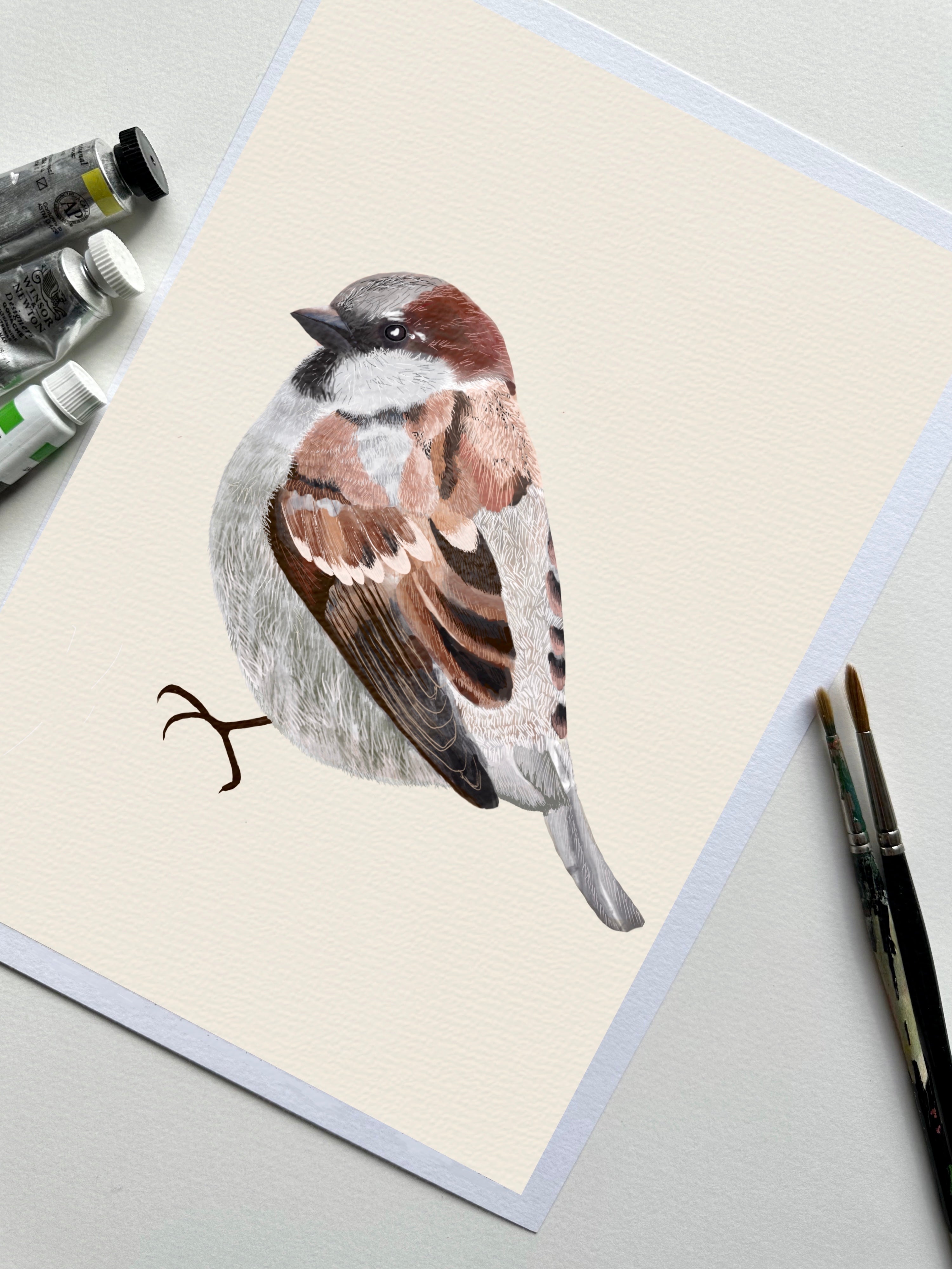My Sparrow design is a new edition to the Bird Lovers series, from my original artwork using gouache acrylic, pencil and inks.