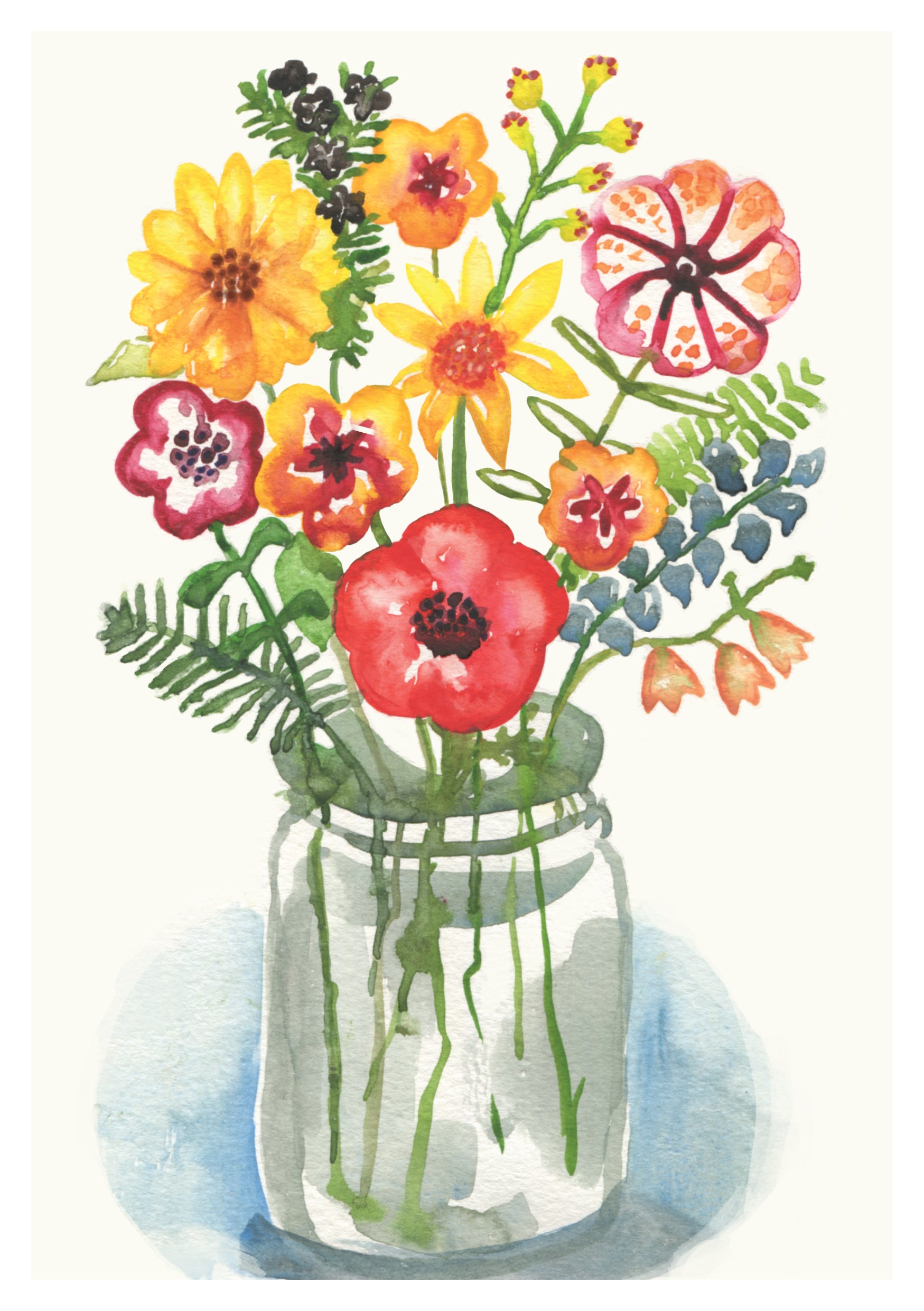 A little posy of pretty meadow flowers, painted using acrylics and watercolours. Painted in July, when nature is bursting with colour.
